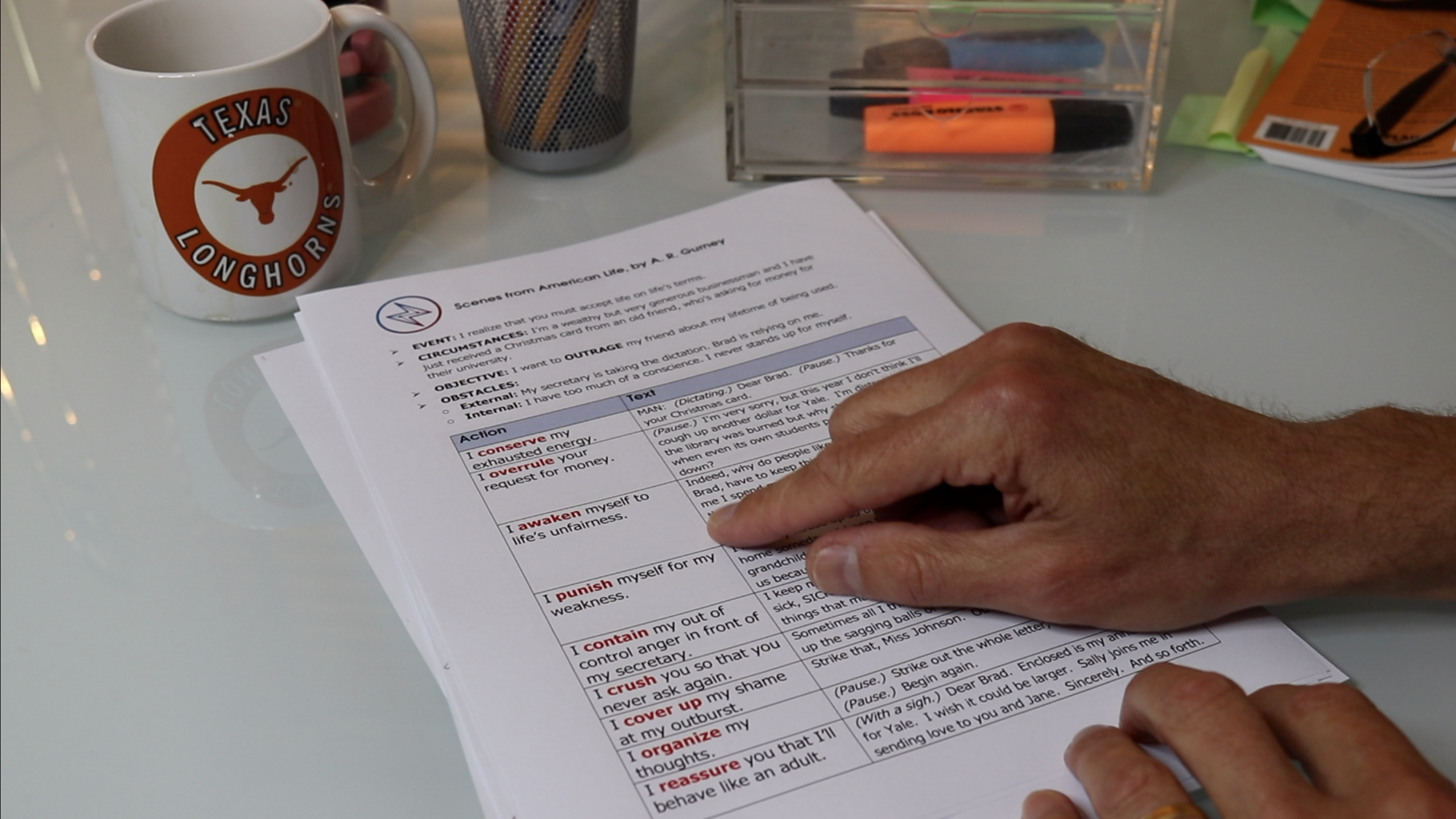 Acting (that is, professional acting) is about creating behavior that’s exactly like how we behave in real life – but in real life we do it without thinking. We professional actors learn to do our homework before the scene, then set that aside and then let the animal within us create the drama.